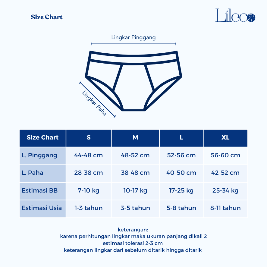 L: Waist +- 66 cm, Thigh +- 46 cm, weight +- 16-21 kg
